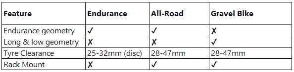 Summarised - Endurance vs All-road vs Gravel