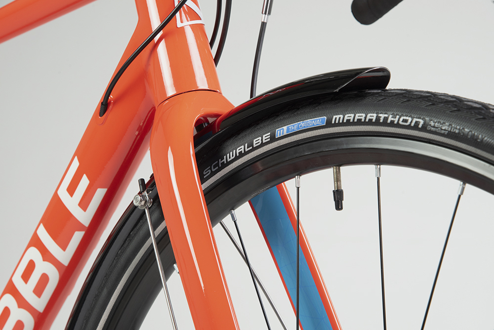 Above Image: Schwalbe Marathon tyres (like those pictured on this CGR AL) have established a reputation for being exceptionally puncture-resistant and highly visible, thanks to their reflective sidewalls.
