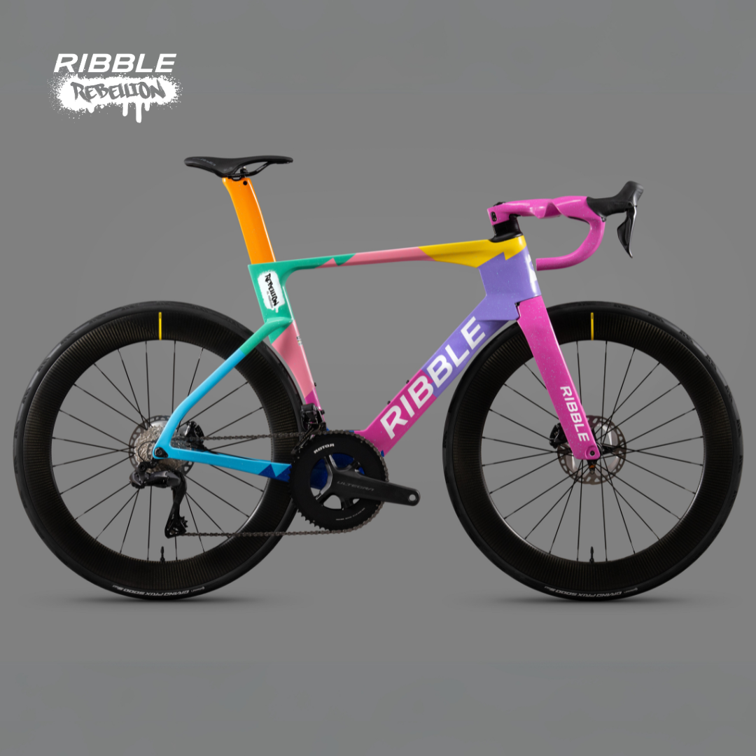 Designed to disrupt, the Ribble Rebellion Ultra-Aero SL R - Team Edition features a top-tier component selection and an eye-popping custom colour paint scheme that's easy to pick out in the bunch. Each team bike features a different colour cockpit, making it easy to distinguish between the riders amid the heat of the action. The complete spec list reads as follows: