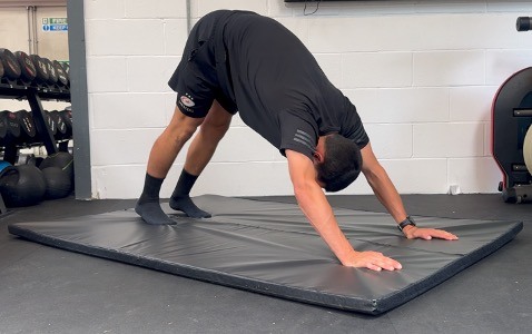 1. Downward-Facing Dog (Hold for 10s, repeat each side x 4)