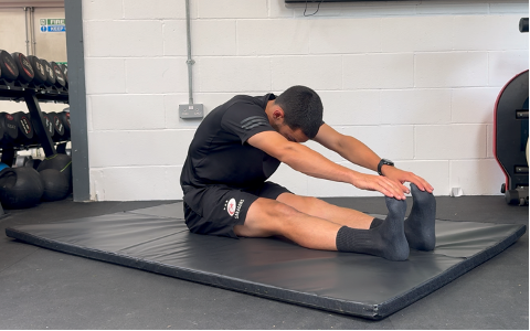 4. Seated Forward Bend (Hold for 10s, repeat each side x 4)